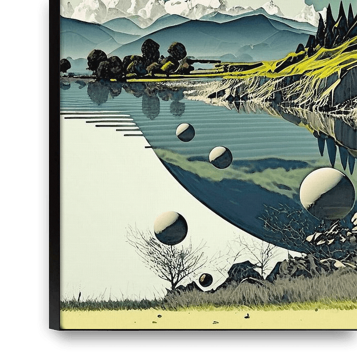 Ihre gewählte Kunst auf Leinwand, gespannt in einem Aluminiumrahmen. Schnell und einfach austauschbar für eine frische Ausstrahlung und ganz nach Ihren Wünschen.