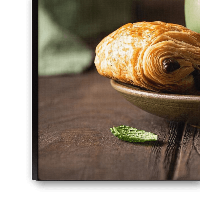 Bestelle dieses Stilleben Grüne Tasse Tee mit Mini-Schokoladenbrötchen von Iryna Melnyk als Reproduktion auf Leinwand, Alu-Dibond, als Poster, Fototapete oder Acrylglasbild.