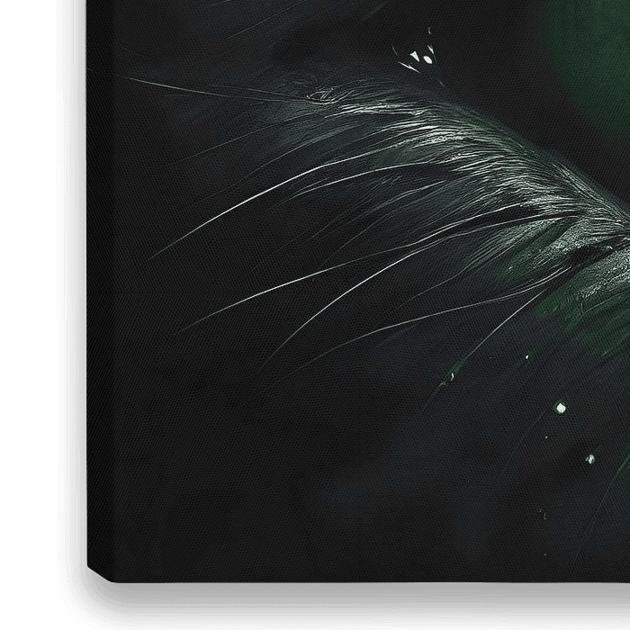 Entdecken Sie die intensive und hypnotische Kraft von "Green Gaze of the Hunter", einem digitalen Kunstwerk, das die Nahaufnahme eines dunklen, alles sehenden grünen Auges eines Raubtiers einfängt. Dieses fesselnde Bild zeigt die lebendige, grün leuchtende Iris, die sich hell von der dunklen Umgebung abhebt und ein Gefühl von…