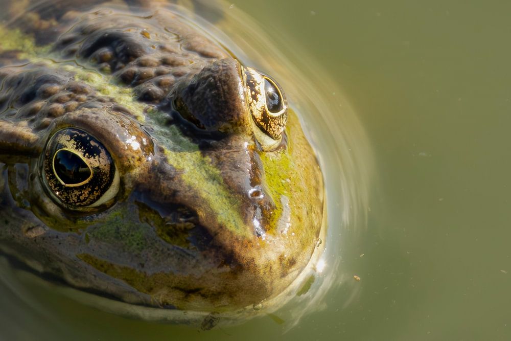 In der Nähe des Vogelhäuschens der Poelruiter auf den Oostvaardersplassen, wo es viel Leben gab, wartete dieser Frosch auf vorbeiziehende Insekten, aber es gab auch viele Raubtiere, die wieder Hunger auf ihn hatten.