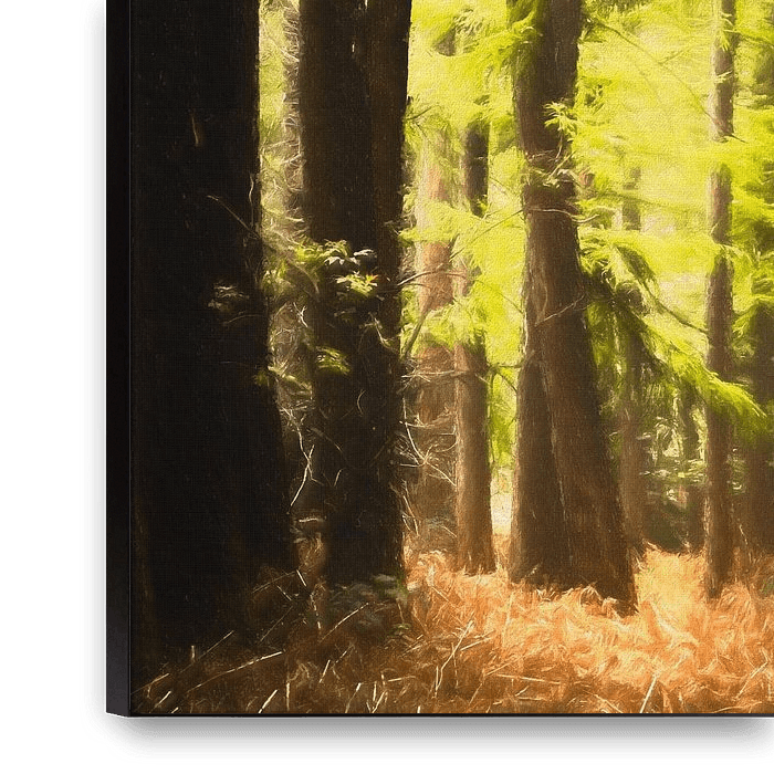 Bestelle diese Malerei Grüner Kiefernwald digital zu einem Gemälde manipuliert von Michel Seelen als Reproduktion auf Leinwand, Alu-Dibond, als Poster, Fototapete oder Acrylglasbild.