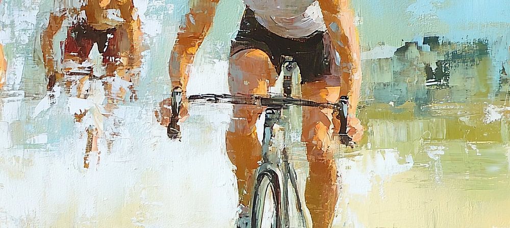 Details: Sportgemälde, Radfahrer Gemälde, Radfahren, Radfahren, Kunst, Aktion, Geschwindigkeit, Männer, Pastellfarben, moderne Kunst