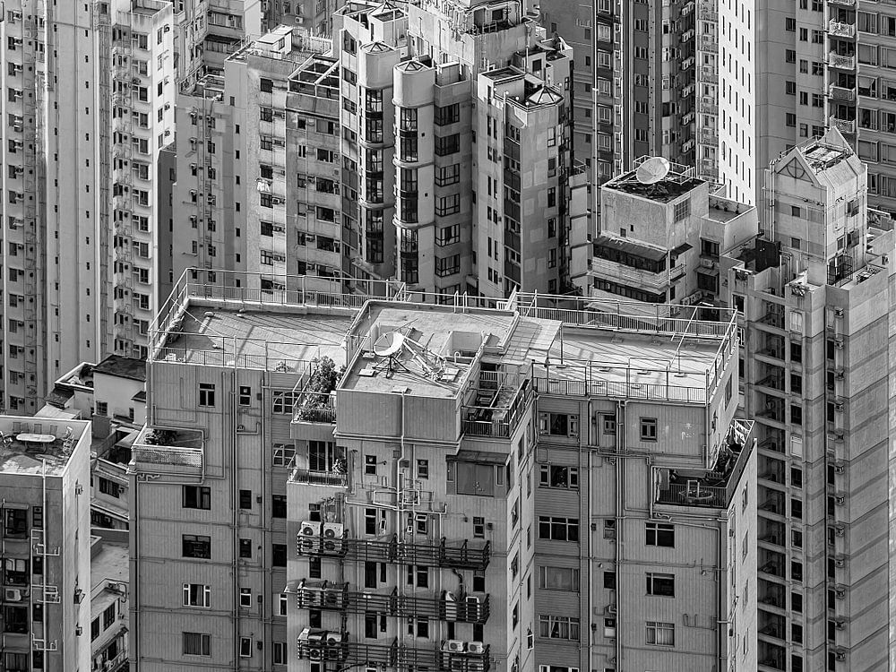 Leben in Hongkong - Wohnhochhäuser in Schwarz und Weiß