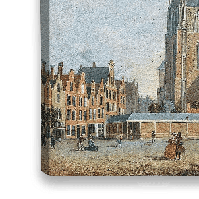 Bestelle diese Malerei Haarlem, Grote Markt, Jan ten Compe - 1730 von Atelier Liesjes als Reproduktion auf Leinwand, Alu-Dibond, als Poster, Fototapete oder Acrylglasbild.
