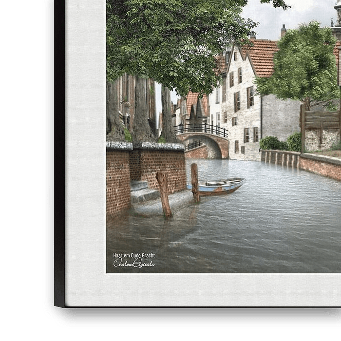 Eine Kombination von Bildern der Oude Gracht in Haarlem im Sommer und im Winter