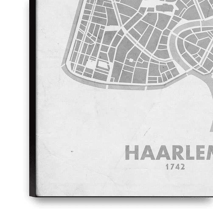 Bestelle dieses abstrakte Wandbild Haarlem Stadtplan 1742 vintage von STADSKAART als Reproduktion auf Leinwand, Alu-Dibond, als Poster, Fototapete oder Acrylglasbild.