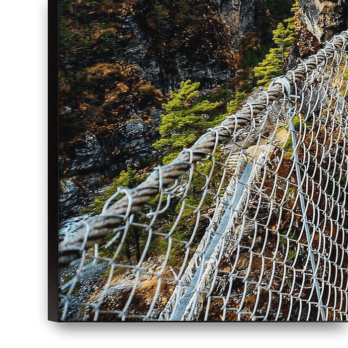 Bestelle das Foto Hängebrücke zum Basar von Namche von Joris de Bont als Reproduktion auf Leinwand, Alu-Dibond, als Poster, Fototapete oder Acrylglasbild.
