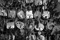 Hängeschlösser, fotografiert in einem Straßenladen in Nepal. Sie werden auch oft als Liebesschlösser verwendet.