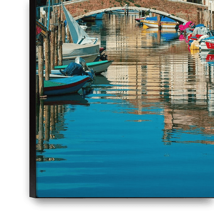Ihre gewählte Kunst auf Leinwand, gespannt in einem Aluminiumrahmen. Schnell und einfach austauschbar für eine frische Ausstrahlung und ganz nach Ihren Wünschen.