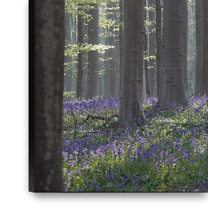 Schönes Morgenlicht im Haller Wald voller blühender Waldhyazinthen.