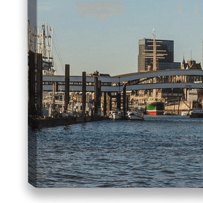 Skyline Hamburg Hafen und Landungsbrücken mit Michel. Schöne alte Segelschiffe, Kontraste zwischen Vergangenheit und Moderne.