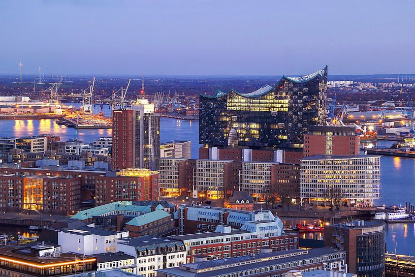 Bestelle das Foto Hamburg von oben von Patrick Lohmüller als Reproduktion auf Leinwand, Alu-Dibond, als Poster, Fototapete oder Acrylglasbild.