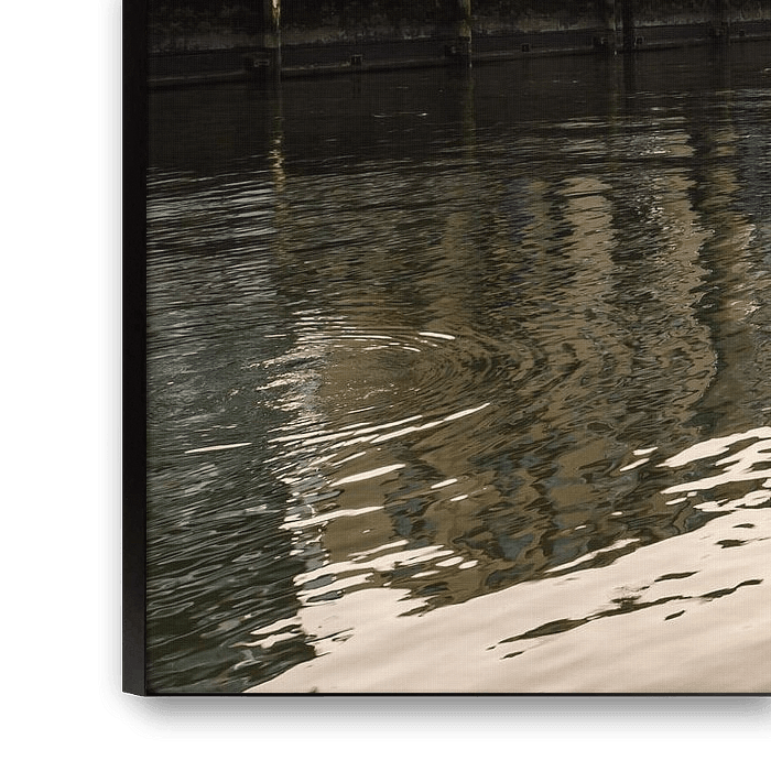 Fleet am Sandtorhafen mit der Elbphilharmonie im Hintergrund .
