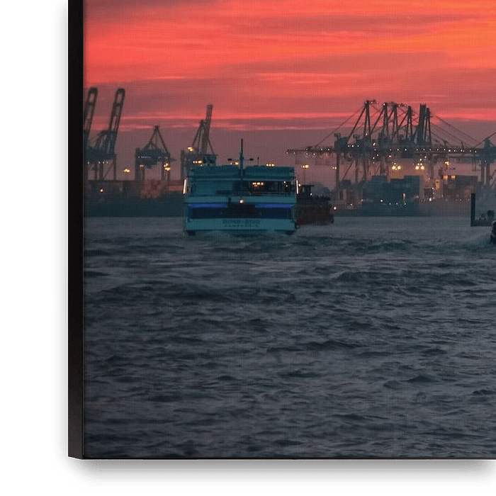 Ein Abend im Hamburger Hafen. Der Himmel über der Elbe hat sich tiefrot verfärbt und die Schlepper haben für die Nacht angelegt.