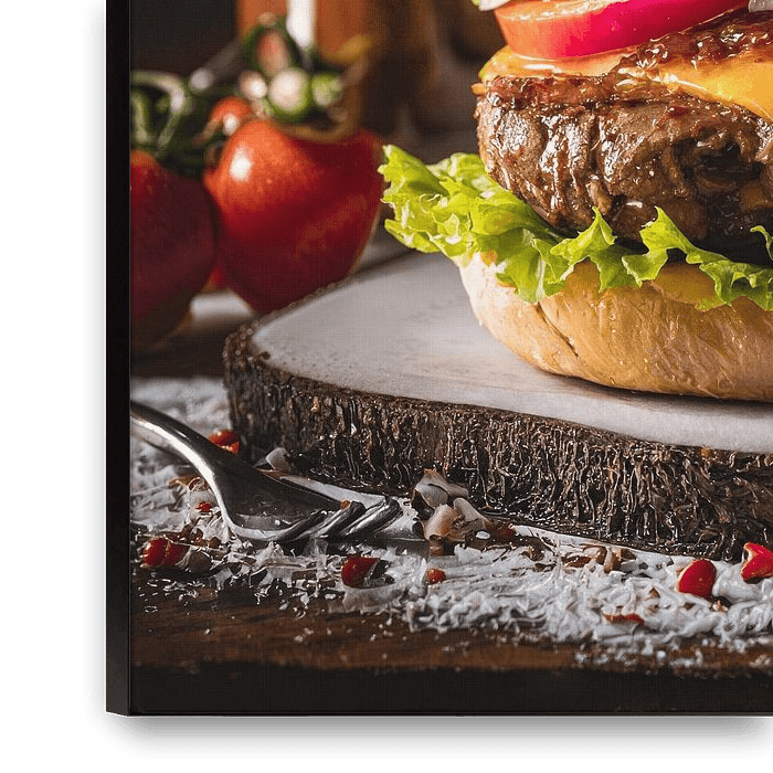 Ihre gewählte Kunst auf Leinwand, gespannt in einem Aluminiumrahmen. Schnell und einfach austauschbar für eine frische Ausstrahlung und ganz nach Ihren Wünschen.