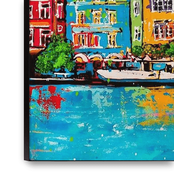 Ihre gewählte Kunst auf Leinwand, gespannt in einem Aluminiumrahmen. Schnell und einfach austauschbar für eine frische Ausstrahlung und ganz nach Ihren Wünschen.