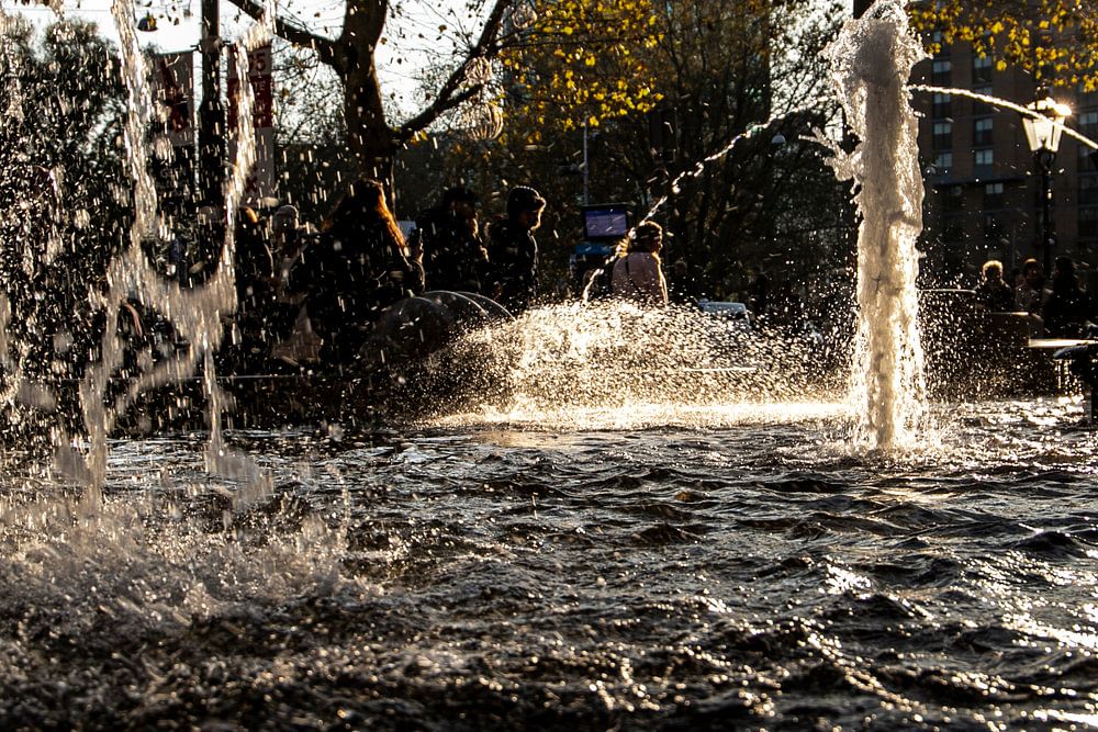Dieser Brunnen befindet sich auf dem Leidseplein in Amsterdam, vor dem Hotel American.