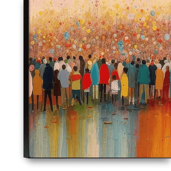 Bestelle dieses abstrakte Wandbild Happy Humans von Treechild als Reproduktion auf Leinwand, Alu-Dibond, als Poster, Fototapete oder Acrylglasbild.
