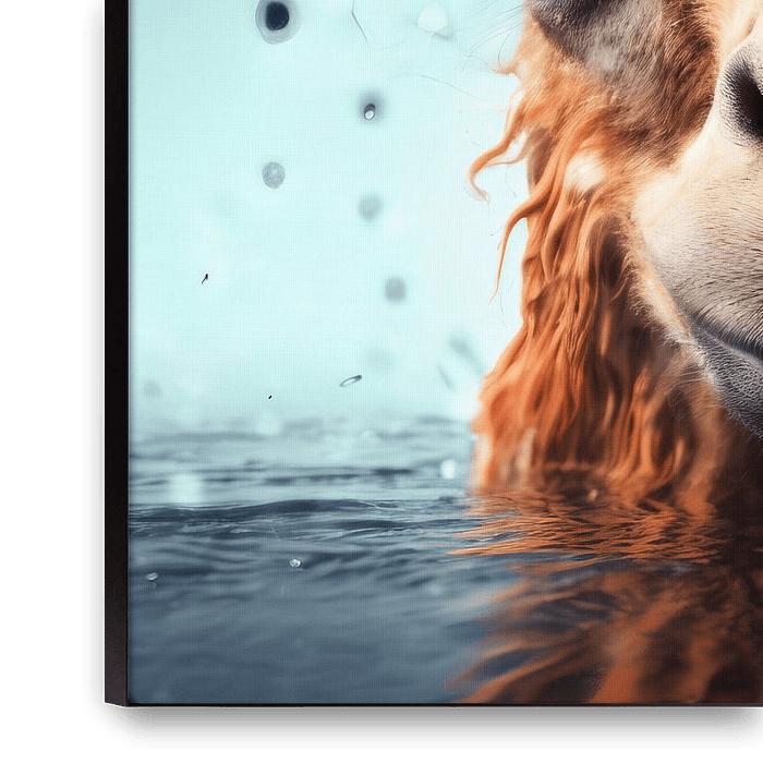 Bestelle dieses Porträt Happy Water Lama von YArt als Reproduktion auf Leinwand, Alu-Dibond, als Poster, Fototapete oder Acrylglasbild.