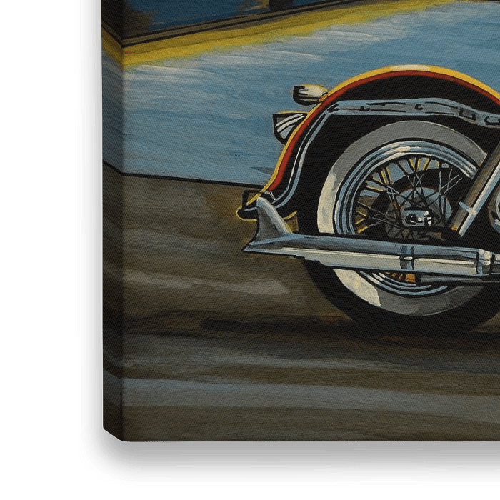 Bestelle diese Malerei Harley Davidson Duo Glide Gemälde von Paul Meijering als Reproduktion auf Leinwand, Alu-Dibond, als Poster, Fototapete oder Acrylglasbild.