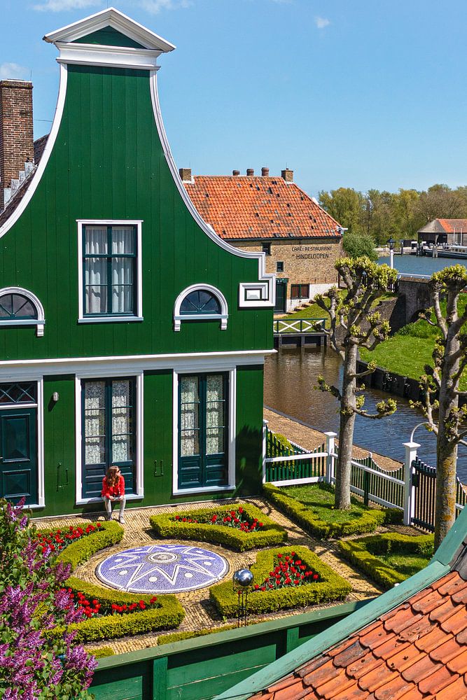 Luftbildaufnahme eines Zaan-Hauses im Zuiderzeemuseum.