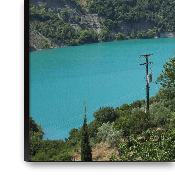 Ein Haus an einem wunderschönen blaugrünen See in Griechenland