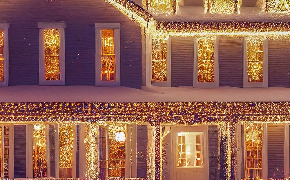 Haus ist weihnachtlich geschmückt mit Lichtern Illustration