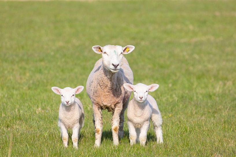 Hausschaf, Ovis orientalis aries, Mutterschaf mit Lämmern, Schleswig-Holstein, Deutschland