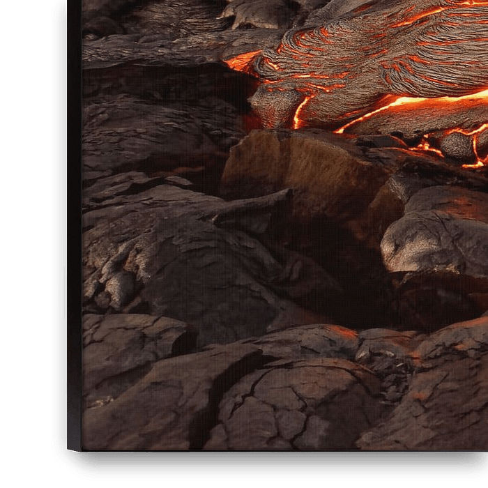 Ein Lavastrom tritt aus einer Erdspalte aus und fließt in einer schwarzen Vulkanlandschaft, die glühende Lava kühlt langsam ab und erstarrt, am Himmel zeigt sich das erste Tageslicht - Location: Hawaii, Big Island, Vulkan "Kilauea"