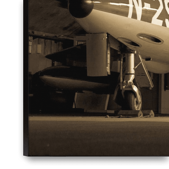 Ein Hawker Hunter ist im spärlichen Licht eines Shelters auf der Leeuwarden Air Base. Es gibt auch eine Farbversion dieses Fotos.