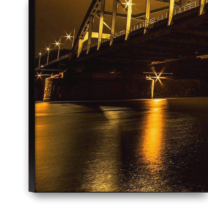 Bestelle dieses moderne Wandbild Hedel-Brücke von Michel de Koning als Reproduktion auf Leinwand, Alu-Dibond, als Poster, Fototapete oder Acrylglasbild.