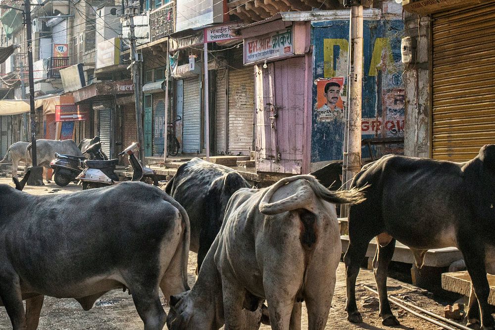 Heilige indische Kühe sind in der Gruppe auf der Stadtstraße. Jaisalmer liegt im Herzen der Thar-Wüs von Tjeerd Kruse