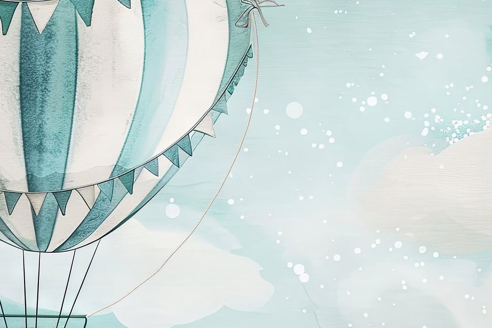 Dieses zauberhafte Aquarell zeigt einen blauen Heißluftballon, der durch einen pastellfarbenen Himmel schwebt. Mit liebevollen Details wie zarten Wimpelketten und sanften Wolken verbreitet das Bild eine beruhigende, träumerische Atmosphäre. Perfekt für das Kinderzimmer, inspiriert es zu fantastischen Abenteuern und lädt zum Träumen ein. Die weichen Blau- und Beigetöne fügen sich harmonisch in jede Einrichtung ein und machen dieses Kunstwerk zu einem idealen Geschenk für kleine Entdecker.