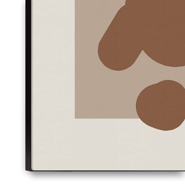 Bright - ein Druck mit abstrakten Formen. Die Formen haben einen Überdruckeffekt. Dieser Druck hat einen erdigen, beigen Grundton mit braunen Akzenten. Dieser Druck passt in ein minimalistisches Interieur, sieht aber auch in einem Boho-Interieur gut aus.