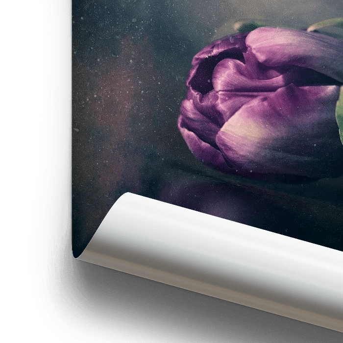 Schönes Licht auf einer intensiv rosa Tulpe vor einem dunklen Hintergrund mit einem schönen runden Bokeh. Das Foto wurde für einen leichten Vintage-Look texturiert.