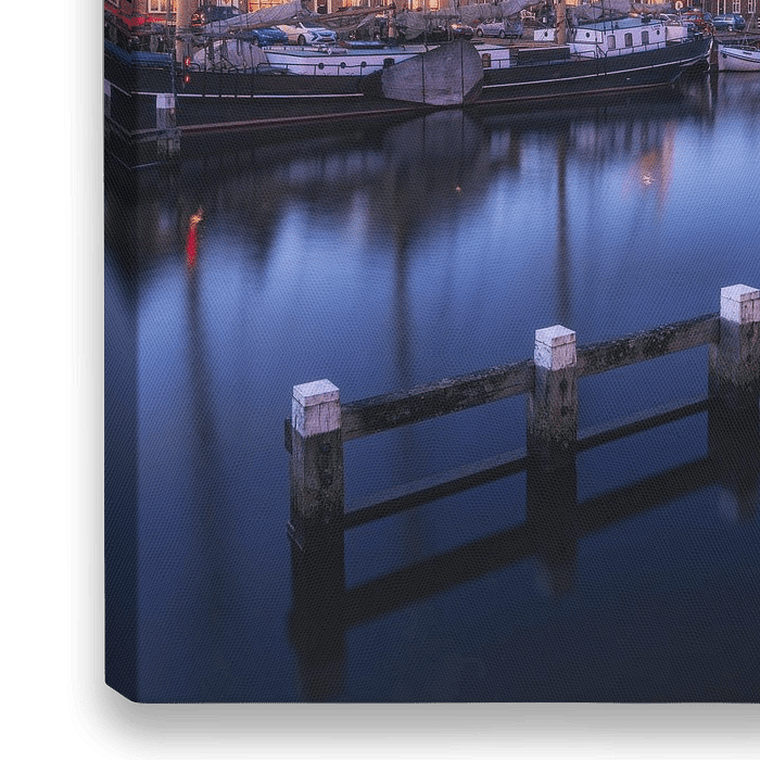 Eine schöne und stimmungsvolle Abendaufnahme des alten Hafens von Hellevoetsluis. Mit einer schönen Spiegelung im Wasser als Bonus.