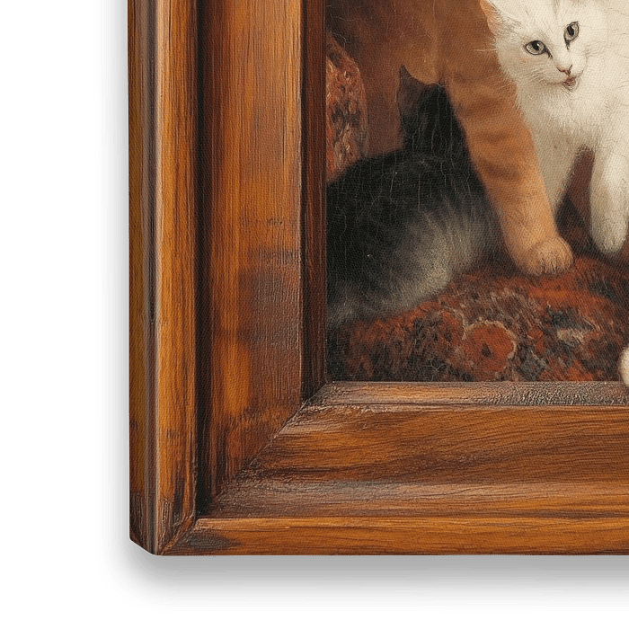 In dieser Version habe ich die Katzen mit Präzision, Aufmerksamkeit und Respekt vor dem Original digital von ihrem ursprünglichen Hintergrund entfernt und sie in einen Bilderrahmen…
