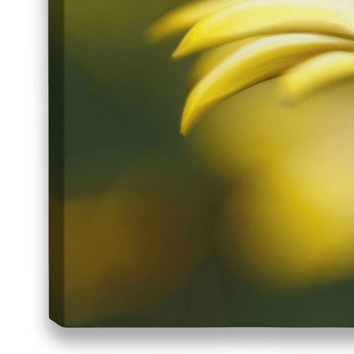 Ein gelbes spanisches Gänseblümchen vor einem weichen Hintergrund. Dieses Foto wurde mit einem alten Objektiv aufgenommen, dem Carl Zeiss Jena Tessar Zebra. Dieses Objektiv verleiht den Fotos einen schönen weichen Effekt.