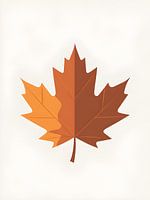 Eine wunderschön minimalistische Illustration eines klassischen Ahornblatts in warmen Herbstfarben, die von leuchtendem Orange über gebrannte Siena bis zu goldenem Bernstein reichen. Die geometrische Behandlung der natürlichen Form des Blattes, mit klaren Linien, die jeden Lappen definieren, und subtilen Aderdetails, schafft eine…
