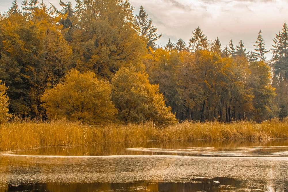 Der Herbst im Kuinderwald bleibt ein magischer Moment. Die Blätter der Bäume färben sich wunderschön und die Spiegelung im See.