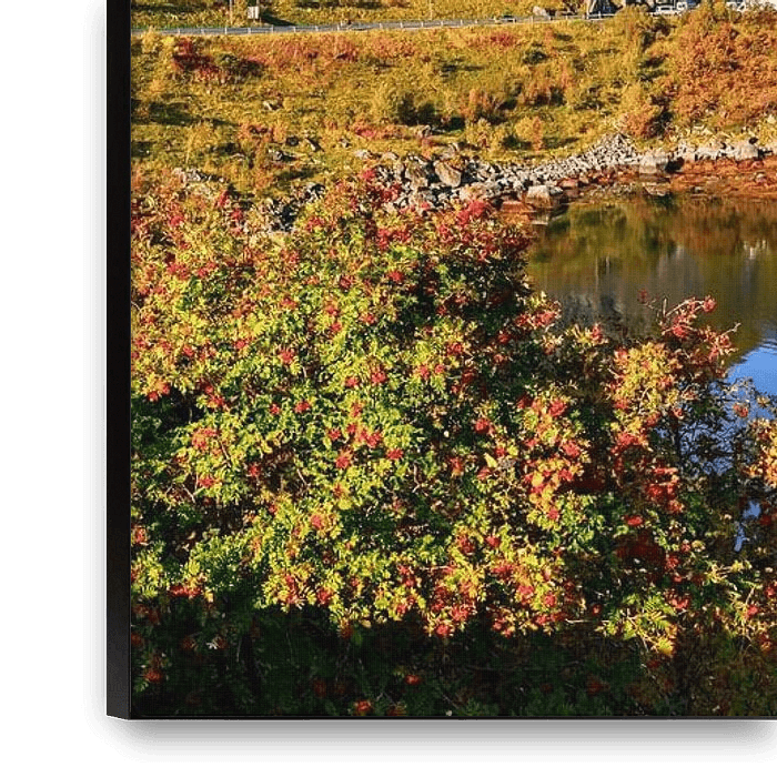 Bestelle dieses Landschafts-Wandbild Herbst in Reine auf den Lofoten - Norwegen von Achim Thomae Photography als Reproduktion auf Leinwand, Alu-Dibond, als Poster, Fototapete oder Acrylglasbild.