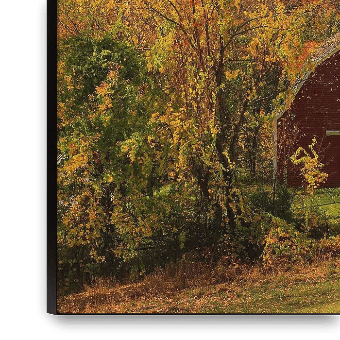 Eine typisch amerikanische Scheune, versteckt in den Herbstfarben von Vermont an der Ostküste der Vereinigten Staaten, auch bekannt als Neuengland.