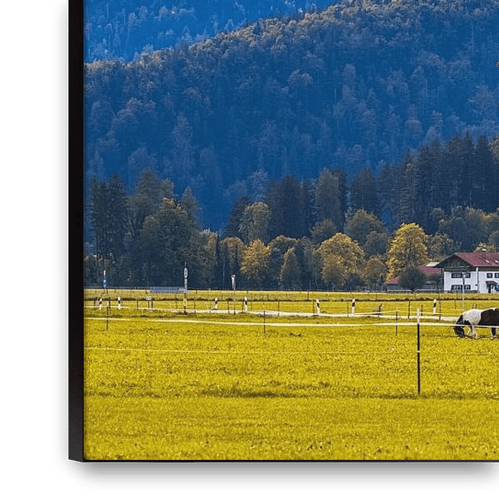 Ihre gewählte Kunst auf Leinwand, gespannt in einem Aluminiumrahmen. Schnell und einfach austauschbar für eine frische Ausstrahlung und ganz nach Ihren Wünschen.