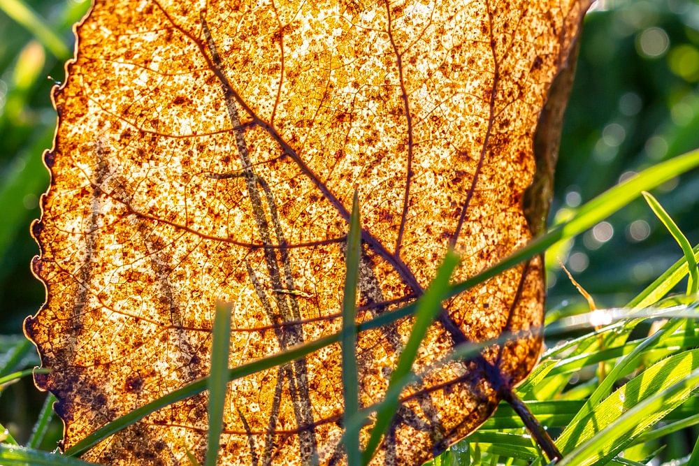 Das Licht scheint durch das Blatt und man kann die Adern schön sehen.