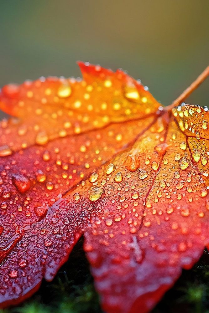 Dieses wunderschöne Design zeigt ein farbenfrohes Herbstblatt, das mit Tautropfen bedeckt ist, die das Detail und die Schönheit der Natur perfekt einfangen. Die leuchtenden Rot- und Orangetöne des Blattes kontrastieren wunderbar mit dem grünen Moos darunter und vermitteln ein Gefühl von Frische und Ruhe. Das Design fängt die Essenz des Herbstes ein, mit dem feinen Gleichgewicht zwischen den leuchtenden Farben der Blätter und der Ruhe der Natur. Diese Nahaufnahme eignet sich perfekt für Liebhaber von Naturdekorationen und ist ideal, um jeden Raum in Ihrem Zuhause zu dekorieren und ihm einen Hauch von Natur zu verleihen. Eine einzigartige Ergänzung für Ihr Interieur.