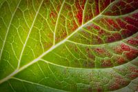 Eine Nahaufnahme der Schönheit des Herbstes. Ein Bild von einem Blatt einer Pflanze im Herbst mit schönen Farben. Die Farben lassen die Adern hervorstechen.