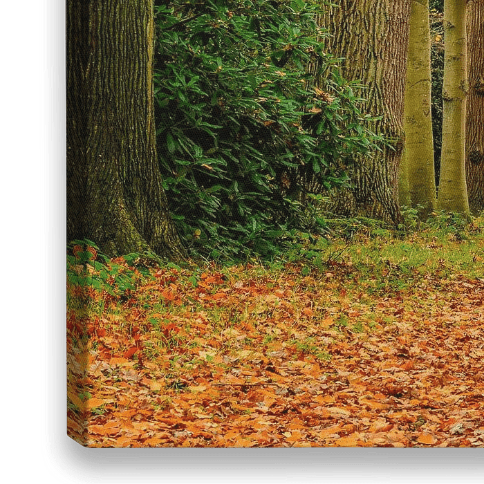 Mit dem Wechsel der Jahreszeiten verändert sich auch die Natur. Die Blätter färben sich und die Bäume werden kahl. Der Waldweg ist durch herabgefallene Blätter farbig gestaltet. Es ist Herbst.