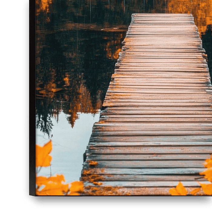 Bestelle dieses Landschafts-Wandbild Herbstlicher Steg von Poster Art Shop als Reproduktion auf Leinwand, Alu-Dibond, als Poster, Fototapete oder Acrylglasbild.