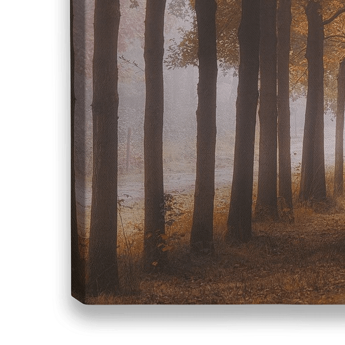 Herbstlicher Wald in schönen Schattierungen im Nebel . Leicht anzubringen und auch als Wandtapete oder Poster geeignet.