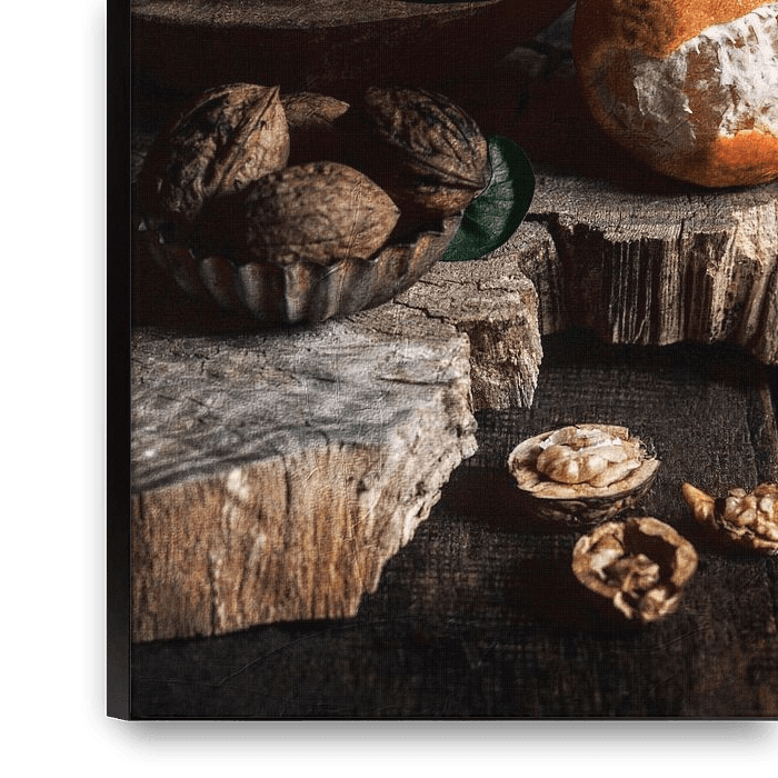 Bestelle das Foto Herbstliches Stillleben mit Mandarinen von Augen | Blicke Foto-Art als Reproduktion auf Leinwand, Alu-Dibond, als Poster, Fototapete oder Acrylglasbild.